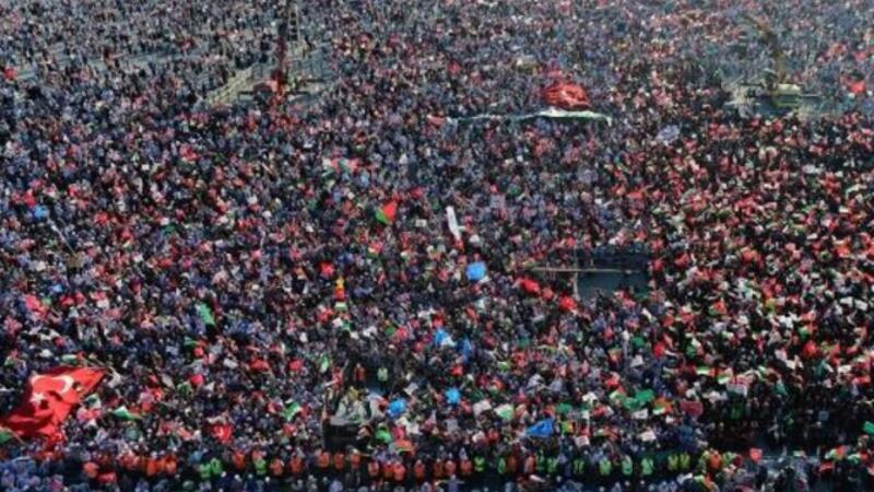 ونظم الحزب التظاهرة التي اطلق عليها اسم "تجمع القدس الكبير" في منطقة "يني كابي" على الساحل الاوروبي لبحر مرمرة، حيث رفع الالاف اعلاما تركية وفلسطينية وشعارات على غرار "اسرائيل تفهم القوة"، في التجمع الذي لم يشارك فيه اي مسؤول حكومي كبير.