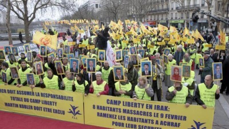 تظاهر مئات الاشخاص السبت في باريس دعما للمعارضين الايرانيين في معسكر ليبرتي في العراق وذلك تلبية لدعوة المجلس الوطني للمقاومة الايرانية على اثر مقتل ثمانية معارضين في هذا المعسكر قرب بغداد في بداية شباط/فبراير.