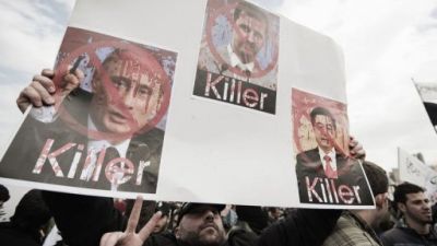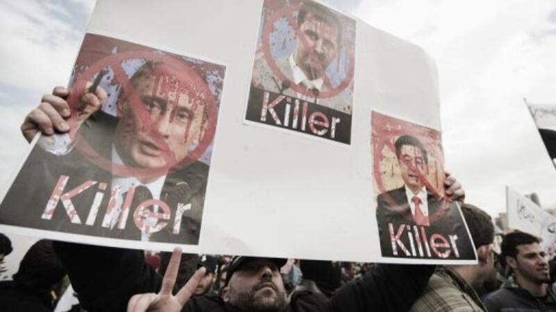 واطلق المتظاهرون المناهضون هتافات تهاجم الرئيس السوري بشار الاسد مثل "يا ظالم ويحك، مزبلة التاريخ بيتك" و"الشعب يريد اسقاط النظام" و"بابا عمرو معاكي للموت" و"لبيك يا حمص".