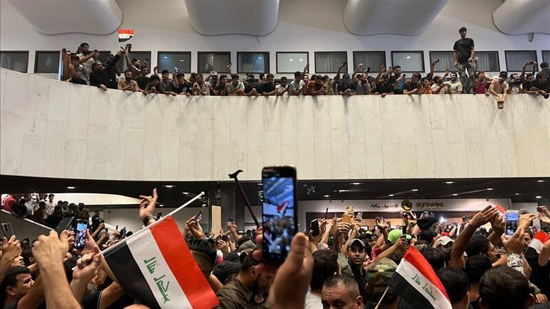 واقتحم أنصار التيار الذي يتزعمه مقتدى الصدر مبنى مجلس النواب الاربعاء، رفضا لترشيح تحالف قوى "الإطار التنسيقي" محمد شياع السوداني لرئاسة الحكومة المقبلة.