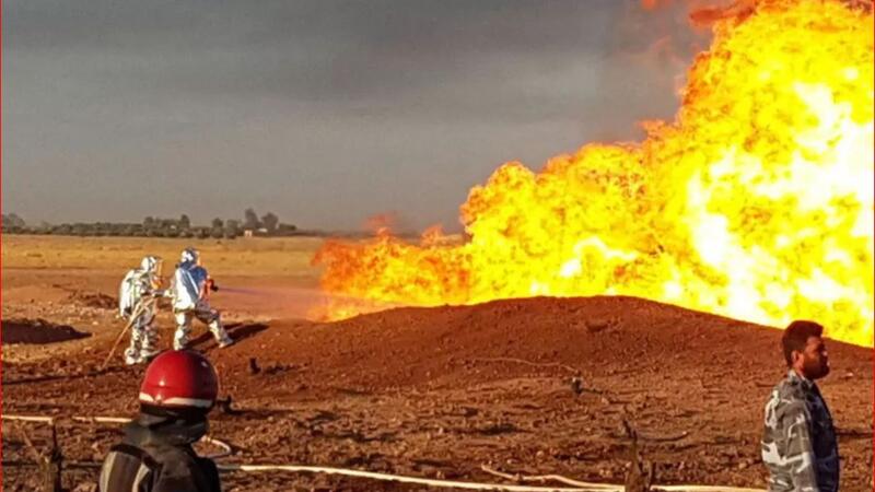 ونشرت «سانا» صوراً تظهر كتلاً كبيرة من النيران المشتعلة. ويظهر في عدد منها رجال إطفاء وهم يحاولون إخماد النيران. وخلّف الانفجار حفرة كبيرة وضرراً بأحد الأنابيب.