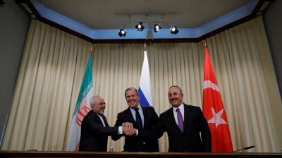وعقد وزراء الخارجية الروسي سيرغي لافروف والتركي مولود تشاووش أوغلو والإيراني محمد جواد ظريف اجتماعات ثنائية وثلاثية في موسكو، وأكدوا في مؤتمر صحافي مشترك في نهاية هذه المحادثات على توافق وجهات نظرهم من الأزمة السورية.