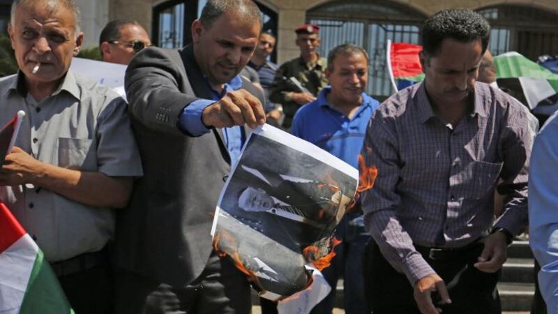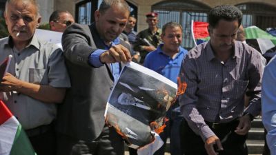 أحرق نشطاء فلسطينيون، الثلاثاء، صورا للرئيس الأمريكي دونالد ترامب، خلال وقفة بمدينة رام الله، تنديدا بقرار إدارته، وقف مخصصاتها لوكالة غوث وتشغيل اللاجئين الفلسطينيين “أونروا”.
