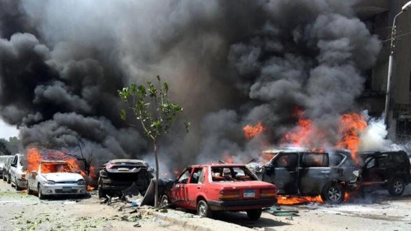 السنة اللهب تتصاعد في موقع التفجير الذي استهدف بركات في القاهرة