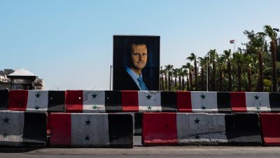 صورة شخصية للرئيس السوري بشار الأسد عند نقطة تفتيش في دمشق