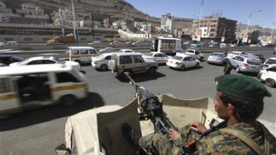 جندي من الجيش اليمني في دورية أمنية بشارع في صنعاء