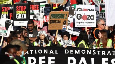 تظاهرة حاشدة في لندن تطالب بوقف اطلاق النار في غزة