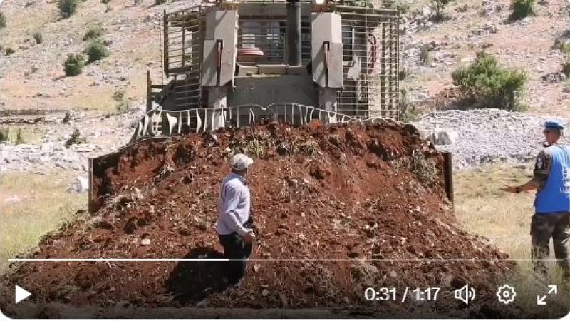جرافة اسرائيلية تردم الرمل على مواطن لبناني