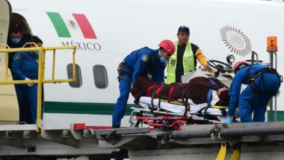 وتم اخراج اول الناجين من الطائرة على نقالة، ونقل الى مروحية تابعة للشرطة. اما الناجي الثاني فقد حمل العلم المكسيكي.