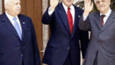 وتابع بوش يقول: "إننا عازمون على رؤية دولتين ديمقراطتيتين، إسرائيل وفلسطين، تعيشان جنبًا إلى جنب بسلام وأمان. من اللائق بالشعب الفلسطيني أن تكون له حكومة تمثل الاستقامة والسلام. ومن اللائق بالشعب الإسرائيلي أن يتوقف الإرهاب ضده وأن يكون له جيران يعيش معهم بسلام. على الدول العربية أن توقف التحريض عبر وسائل الإعلام والتربية على التطرف. على قادة فلسطين أن يحاربوا الإرهاب والفساد.