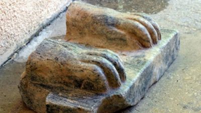 اكتشف جزء من تمثال لأبو الهول مصنوع من الغرانيت وهو عبارة عن كفوف أبو الهول وجزء من ساعديه مع نقش بالهيروغليفية عليه اسم الفرعون منقرع الذي حكم مصر قبل 4500 عام في منطقة تل القدح «هازور» الأثرية في الجليل، شمال إسرائيل.