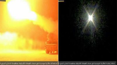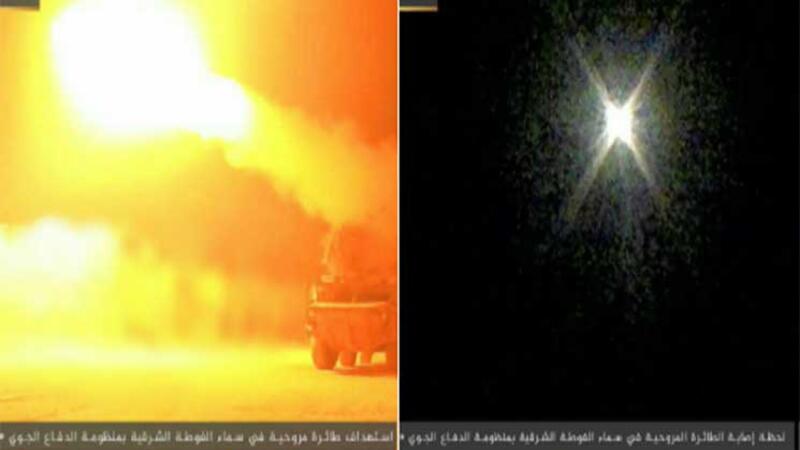 جانب من استهداف منظومة الدفاع الجوي "الأوسا" للطائرة المروحية في سماء #الغوطة_الشرقية وإصابتها.