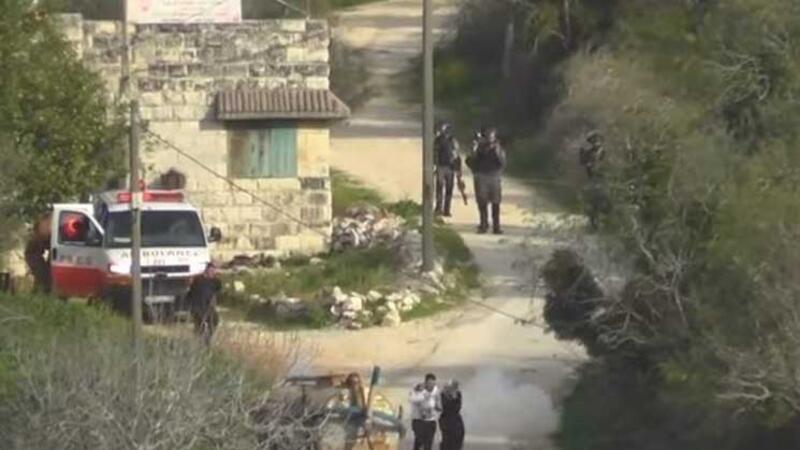 وبيّنت أنه أثناء قيام سيارة إسعاف بإجلاء المصابين من منزل العائلة، استمر إلقاء قنابل الغاز تجاه المدنيين.
