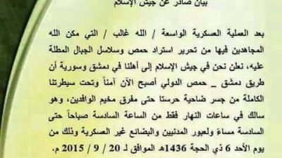 جيش الاسلام يحدد موعد فتح اوتستراد دمشق حمص
