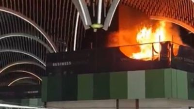 وارتفعت السنة النيران الى سقف الصالات فيما امتلأت صالات الركاب بالدخان الداكن لعدة دقائق قبل ان تتم السيطرة عليه ـ