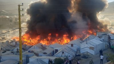 حريق كبير في مخيم للاجئين السوريين في لبنان