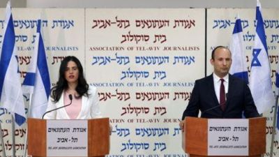 نفتالي بينيت زعيم حزب البيت اليهودي ووزير التعليم ونائبته وزيرة العدل إيليت شاكيد