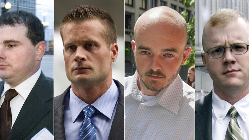 في بادىء الأمر، دين ثلاثة حراس هم بول سلاو وإيفان ليبرتي ودستن هيرد بالقتل العمد ومحاولة القتل العمد أضافة إلى أستخدام أسلحة نارية، وحُكم على كل منهم بالسجن ثلاثين عاما. وحكم على رابع هو نيكولاس سلاتن بالسجن مدى الحياة انطلاقا من انه اول من اطلق النار.