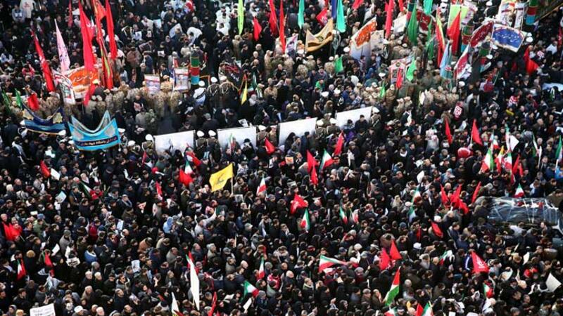 وغص وسط طهران صباح اليوم بالحشود المشاركة في تشييع جثمان سليماني. واحتشد المشيعون حاملين صور قائد فيلق القدس في الحرس الثوري الإيراني بالقرب من جامعة طهران.