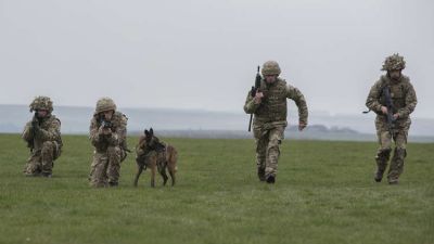اصطفت ثلّة من الكلاب إلى جانب قط وحصان وحمامة أمام قادة الجيش البريطاني للاحتفال بالذكرى السنوية الـ75 لتأسيس جائزة ديكين، التي تشمل أرفع وسام يمنح للحيوانات الأبطال.