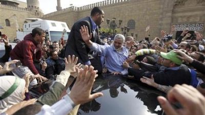 وقال القيادي في حركة حماس اسماعيل هنية الذي يزور مصر قادما من قطاع غزة لالاف المصلين يوم الجمعة في الجامع الازهر "أحيي كل شعوب الربيع العربي وأحيي شعب سوريا البطل الذي يسعى نحو الحرية والديمقراطية والاصلاح."