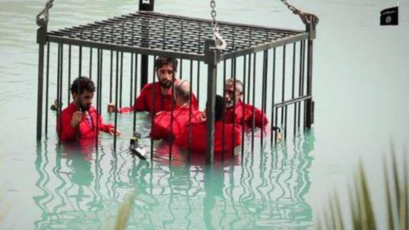 أما الجزء الثاني فأظهر عنصراً ملثماً يقتاد خمسة أشخاص إلى داخل قفص من الحديد، قبل أن يغلقه بقفل. وترفع رافعة القفص وتغرقه في ما يبدو أنّها بركة سباحة. وجهّز القفص بكاميرتين صوّرتا معاناة الأفراد الخمسة تحت الماء، قبل أن يرفع مجدّداً وتبدو فيه خمس جثث.