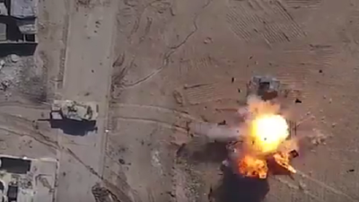 ويوثق التسجيل لحظة وقوع صاروخ على آلية عسكرية وانفجارها. ويسعى التنظيم مؤخرا إلى استهداف المدنيين والقوات العراقية، عن طريق إلقاء قنابل بواسطة طائرات مسيرة حديثة.