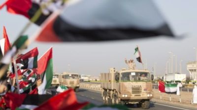 اماراتيون يرحبون بقافلة عسكريةاماراتية عائدة من اليمن