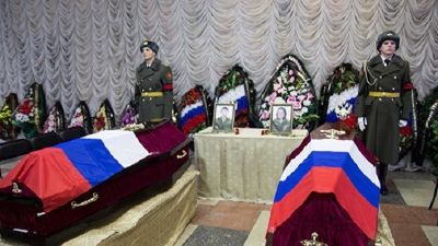 تم تشييع جنازة الممرضتين الروسيتين ناديجدا دوراتشينكو وغالينا ميخائلوفا اللتين لقيتا مصرعهما خلال قصف مستشفى روسي متنقل في حلب، في مقبرة وسط مدينة بيروبيجان.