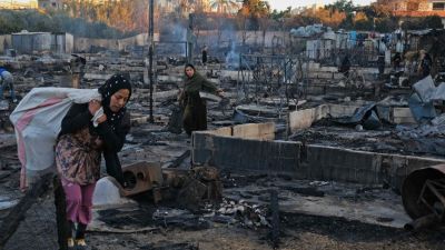أعربت الحكومة السورية على أسفها الشديد لإحراق مخيم لاجئين سوريين شمالي لبنان، بينما أعلن جيش الأخير اعتقال عدد من الأشخاص على خلفية الحادث.