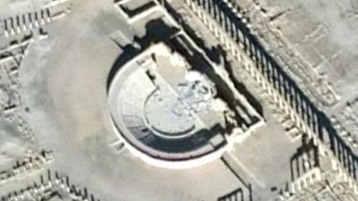 وبدا من خلال صور التقطتها الاقمار الاصطناعية وكأن الدمار طال الجزء الاكبر من واجهة المسرح الروماني. وهو الذي طالما استضاف مناسبات موسيقية ومسرحية، ويعد من أبرز المعالم السياحية في سوريا.
