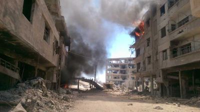وقالت المصادر لوكالة الأنباء الألمانية إن أصوات الانفجارات ناجمة عن قصف الجيش السوري لمواقع في حيي عين ترما وجوبر الخاضعين لسيطرة المعارضة.