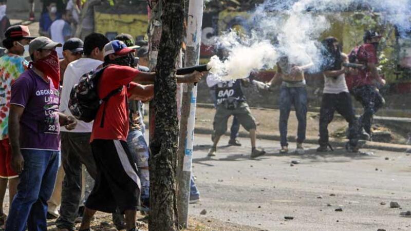 واندلعت الموجة الاخيرة من المواجهات بين شبان متظاهرين وشرطة مكافحة الشغب في ماناغوا بعد خطاب عبر التلفزيون للرئيس اورتيغا مساء السبت. واقام المتظاهرون حواجز في الشوارع ورموا بالحجارة عناصر الشرطة الذين ردوا بالغاز المسيل للدموع.