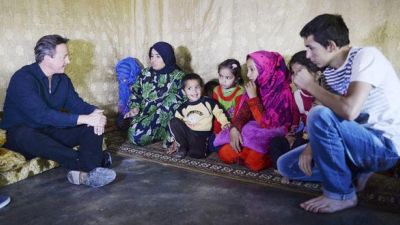 زار رئيس الوزراء البريطاني ديفيد كاميرون يوم الاثنين مراكز للاجئين السوريين في لبنان بعد أسبوع من تعهده باستقبال 20 الف شخص موجودين حاليا في مخيمات عقب فرارهم من الحرب الاهلية في سوريا المجاورة.