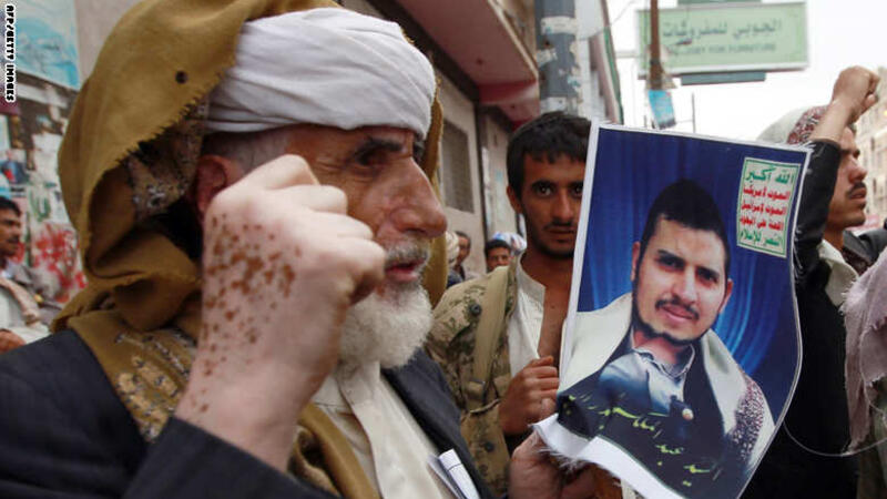 مناصر يحمل صورة زعيم جماعة أنصار الله الحوثية عبد الملك الحوثي