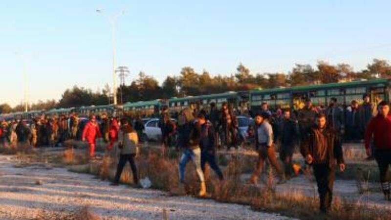 وجاء اتفاق الإجلاء تتويجا لتقدم سريع حققه الجيش السوري وحلفاؤه على مدى أسبوعين دفع المعارضين للتراجع إلى جيب أصغر كثيرا بالمدينة تحت وطأة ضربات جوية مكثفة ونيران مدفعية.