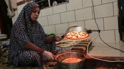 في حي قريب في مخيم الشاطئ الفقير للاجئين غرب مدينة غزة تقوم الحاجة ام عادل الزهار (57 عاما) بعجن الطحين وخبزه في فرن كهربائي بمجرد وصول التيار الكهربائي للمنزل الصغير الذي تعيش فيه مع زوجها وثمانية من ابنائها.