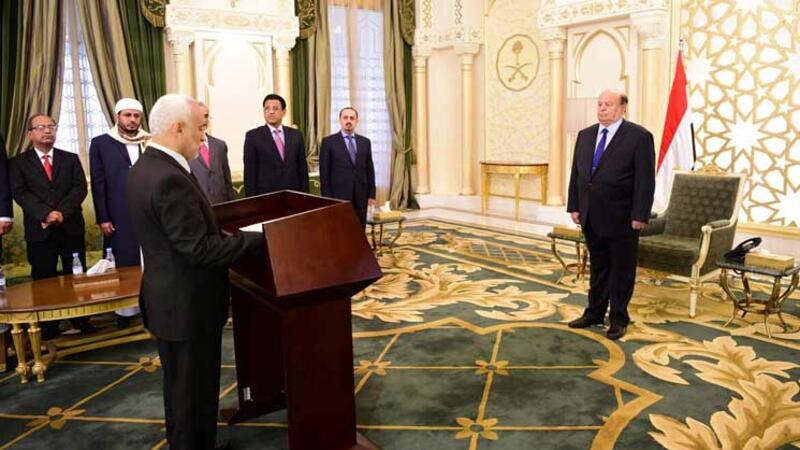 أدى سبعة وزراء في الحكومة اليمنية، الإثنين، اليمين الدستورية أمام رئيس البلاد، عبد ربه منصور هادي، في مقر إقامته المؤقت بالعاصمة السعودية الرياض، بعد أكثر من أسبوعين من قرار تعيينهم في مناصبهم الجديدة.
