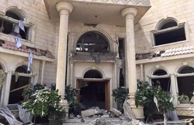 نددت سلطنة عمان باستهداف منزل سفيرها في صنعاء، الذي أظهرت الصور تعرضه للقصف.