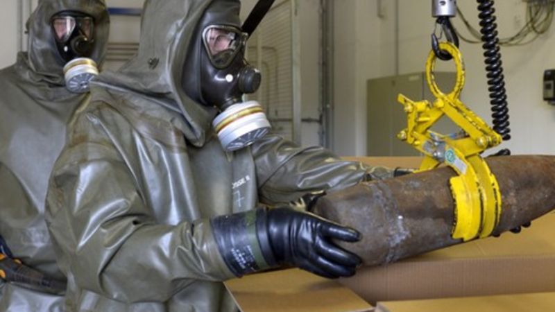 وكان النظام السوري انضم إلى منظمة حظر الأسلحة الكيميائية في 13 سبتمبر 2013. وفي الشهر نفسه، تبنى مجلس الأمن الدولي القرار رقم 2118، الذي يتعلق بأسلحة سوريا الكيميائية.