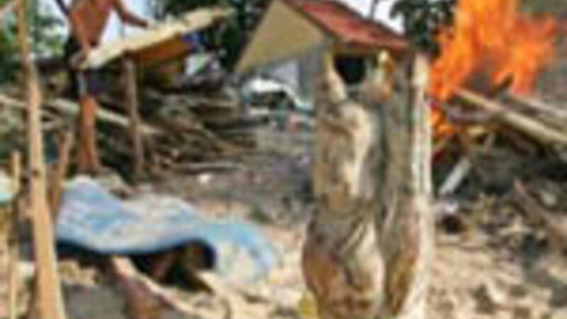 في قرية مولايتيفو في منطقة يسيطر عليها نمور التاميل في شمال شرق سريلانكا، يقوم شباب المتمردين بحرق جثث أكثر من ثلاثة آلاف شخص قتلوا في الكارثة.
