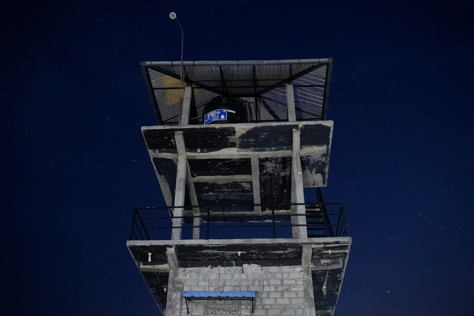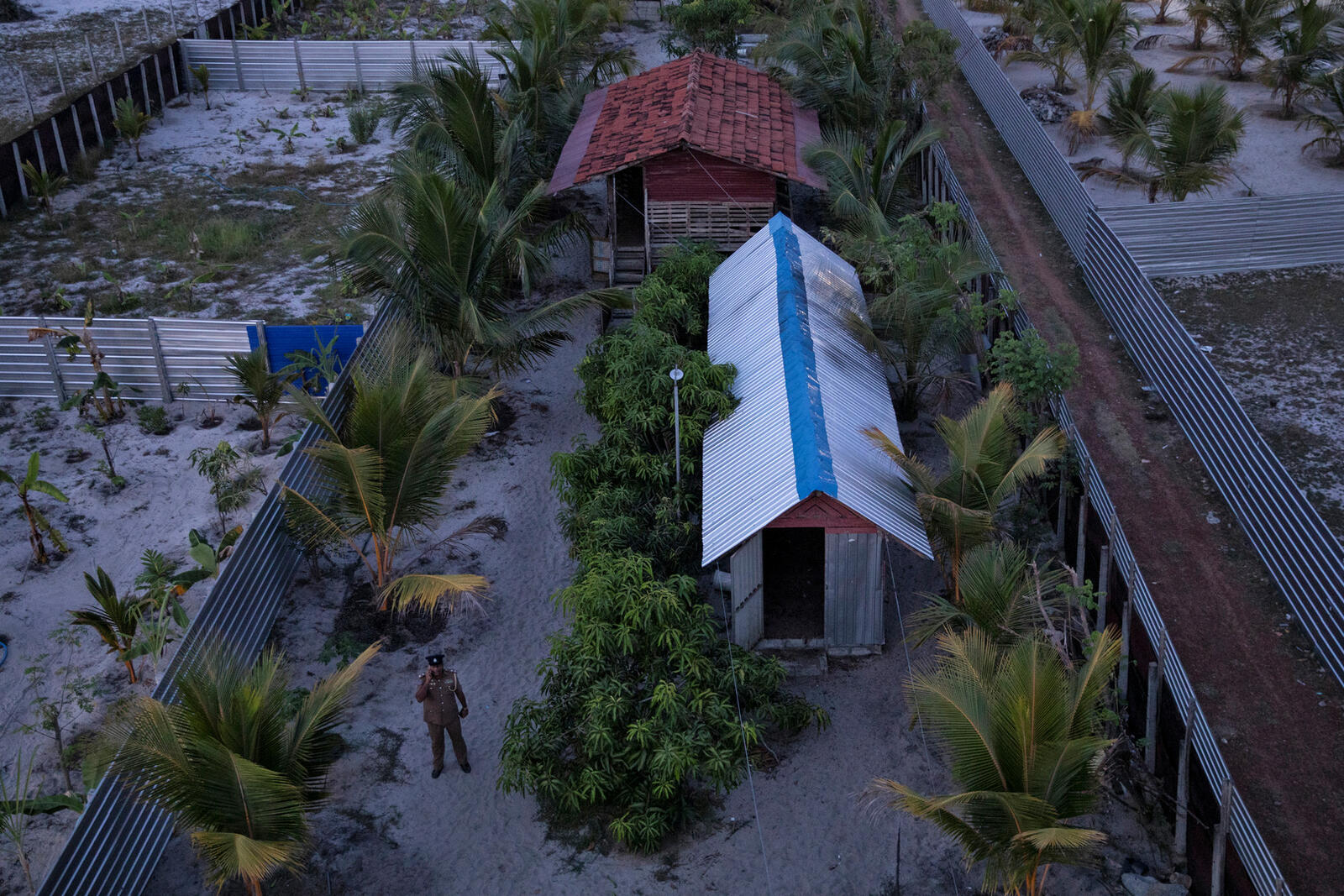 ويحيط بالمنطقة التي يقع بها المعسكر برج مراقبة من أربعة طوابق وأشجار مانغو وحظيرة دجاج وسقيفة للماعز.