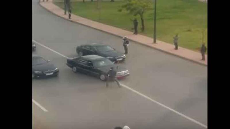 صورة ماخوذة من مقطع الفيديو تظهر لحظة اعتراض الرجل لسيارة قيل انها لملك المغرب محمد السادس