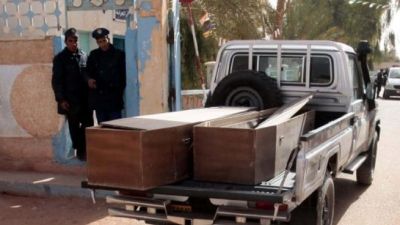 سيارة تحمل نعوشا فارغة في طريها لنقل ضحايا العملية/ا.ف.ب