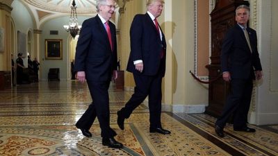 وصاح الرجل على بعد أمتار من الرئيس الأمريكي: "ترامب يعني الخيانة"، إلا أن ترامب أكمل طريقه بشكل عادي، رفقة السيناتور ميتش ماكونيل.
