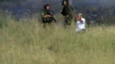 ويظهر الفيديو الذي صوره متطوع لصالح منظمة بيتسيلم الحقوقية الاسرائيلية قيام مستوطنين اثنين باطلاق النار على فلسطيني بوجود ثلاثة جنود على الاقل دون ان يتدخلوا.