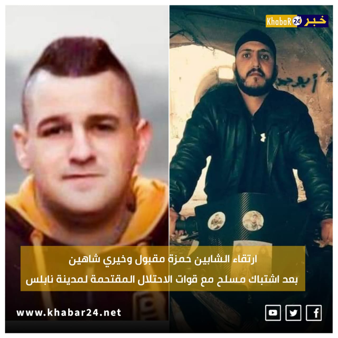 افادت مصادر فلسطينية باستشهاد الشابين حمزة مقبول وخيري شاهين بعد اشتباك مسلح مع قوات الاحتلال المقتحمة لمدينة نابلس