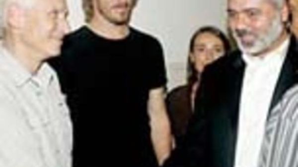 وأظهرت لقطات لقناة فوكس نيوز الرجلين وهما يعانقان زملاءهما داخل بهو الفندق حيث التقيا في وقت لاحق برئيس الوزراء الفلسطيني اسماعيل هنية.