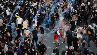 اندلعت صدامات ليل الثلاثاء في باريس على هامش تظاهرة محظورة شارك فيها حوالى 20 ألف شخص للاحتجاج على عنف الشرطة الفرنسية ونظمت بمبادرة من أقارب شاب أسود قتل أثناء توقيفه في 2016.