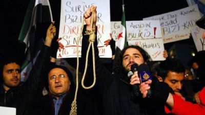 وعم الاستنكار والشجب في عدة اماكن وهاجم معارضون سوريون سفاراتهم في عدة عواصم اوروبية (اثينا ولندن وباريس) وعربية (الكويت والقاهرة والرياض) وحاولوا اقتحامها.